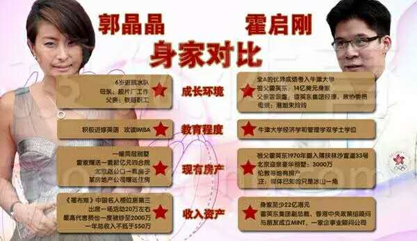后來好不容易抱得美人歸,港媒卻是一片唱衰聲。他們覺得郭晶晶高攀了霍啟剛,甚至還做了一個(gè)兩人的身家對比圖,預(yù)言郭晶晶一定很快就會被甩。