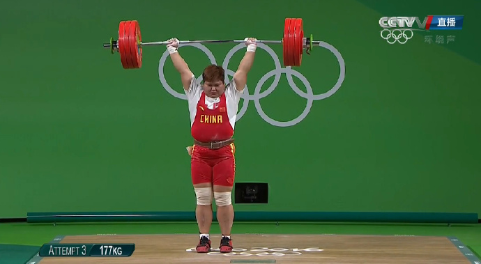 此時(shí)抓舉比賽還有其他選手參與,美國選手羅布雷斯三把舉起了126公斤。韓國選手李慧素三把沖126公斤失敗,她只舉起了122公斤。朝鮮選手金國香二把舉起了127公斤。