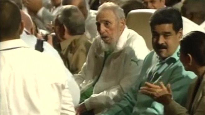 13日傍晚,卡斯特羅出現(xiàn)在哈瓦那卡爾·馬克思劇院。當(dāng)卡斯特羅和他的弟弟、古巴現(xiàn)任領(lǐng)導(dǎo)人勞爾·卡斯特羅一起出現(xiàn)時(shí),全場觀眾起立鼓掌、高喊“菲德爾!菲德爾!菲德爾!”