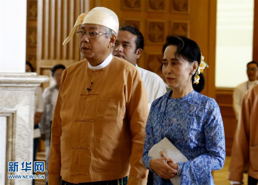 昂山素季與緬甸新總統(tǒng)吳廷覺