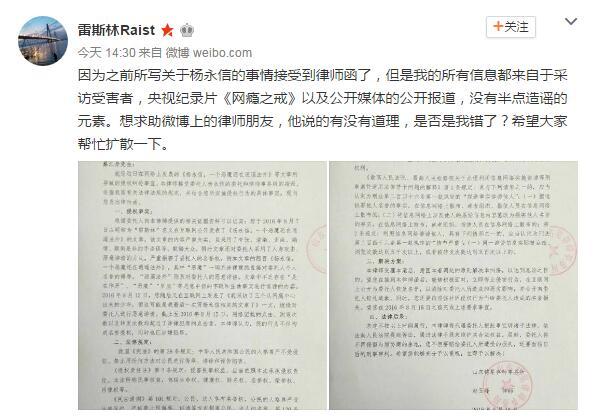 雷斯林微博截圖