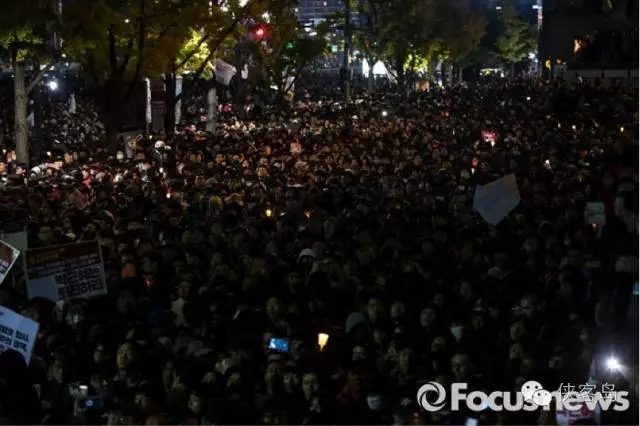 10月29日晚首爾清溪廣場上的大規(guī)模集會,中間的標(biāo)語是“彈劾樸槿惠”