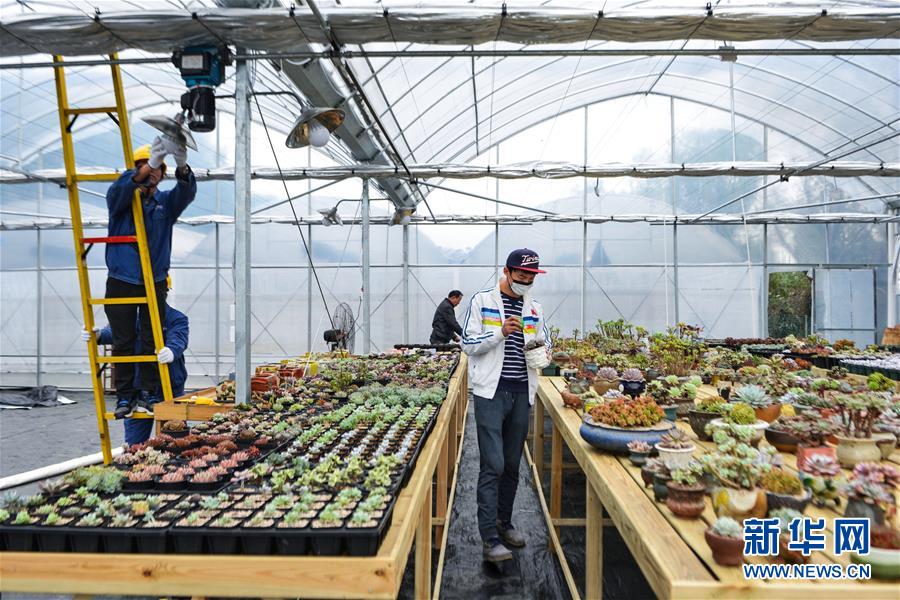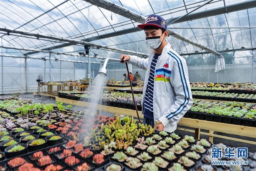 11月24日,嚴(yán)國富在自己的園藝大棚內(nèi)照看多肉植物。嚴(yán)國富2014年大學(xué)畢業(yè)之后,憑著自己對(duì)多肉植物種植的興趣愛好開始創(chuàng)業(yè),成立了歐巴園藝有限公司。目前,公司種植上千種多肉植物,創(chuàng)立了線上線下兼顧的銷售模式,年銷售額近百萬。近兩年來,慈溪市對(duì)高校畢業(yè)生創(chuàng)辦小型微利企業(yè)減免稅費(fèi),并將網(wǎng)絡(luò)創(chuàng)業(yè)群體納入創(chuàng)業(yè)小額擔(dān)保貸款、創(chuàng)業(yè)者社保補(bǔ)貼、一次性創(chuàng)業(yè)補(bǔ)助等政策范疇。新華社記者 徐昱 攝