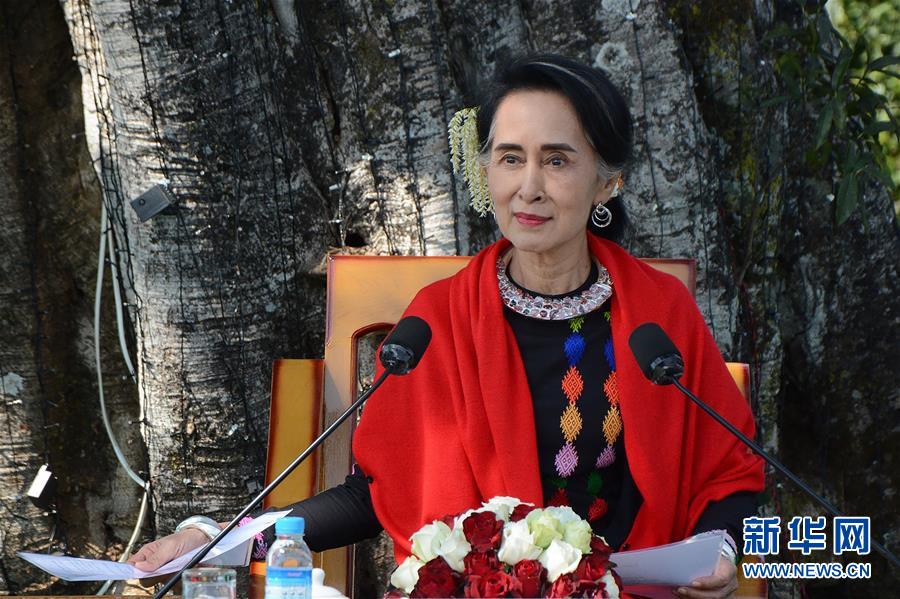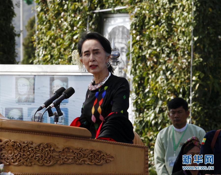 2月12日,在緬甸撣邦彬龍鎮(zhèn),緬甸國務(wù)資政昂山素季在活動上致辭。緬甸全國各地12日舉行聯(lián)邦節(jié)慶?;顒樱挼閲鴦?wù)資政昂山素季在當(dāng)天的致辭中呼吁所有民族武裝加入和平進(jìn)程。 新華社/法新