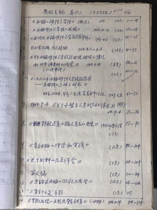 袁隆平雜交水稻論文原始手稿公布!整潔的手寫漢字,評論淚目