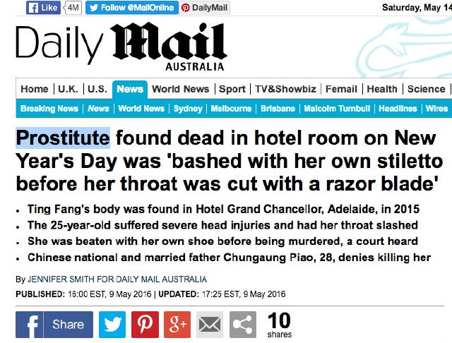 方婷來自悉尼,她的職業(yè),是伴游。當(dāng)然,這只是業(yè)內(nèi)委婉的說法。更廣為人知的名稱,是援交,也就是性工作者。對于這一點(diǎn),報(bào)道此事的澳洲媒體毫不掩飾?!稄V告人報(bào)》用Sex Worker(性工作者),而小報(bào)Daily Mail則用Prostitute(妓女)來形容她,并披露了她的收費(fèi)。“她的花名是Honey,每小時(shí)收費(fèi)$350澳元,兩小時(shí)$600澳元,出鐘過夜1,500澳元,”《廣告人報(bào)》稱。