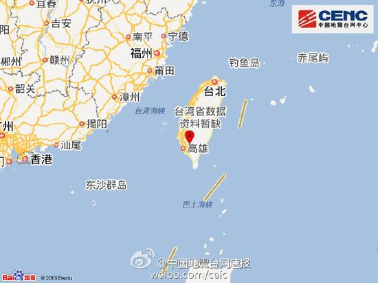 臺灣高雄市發(fā)生4.4級地震 震源深度27千米