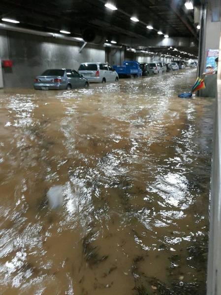 二航廈的報(bào)到柜臺(tái)也淹水,機(jī)場(chǎng)D側(cè)一度停電10分鐘左右,地下室、停車(chē)場(chǎng)也成了水鄉(xiāng)澤國(guó)。受到暴雨襲擊,桃園機(jī)場(chǎng)陸空交通大亂,地勤作業(yè)除一度暫停,國(guó)道進(jìn)桃機(jī)地下道積水,許多機(jī)場(chǎng)上班人員,沒(méi)法準(zhǔn)時(shí)上班,二航廈斷電及漏水,地下室也淹水,機(jī)場(chǎng)人員積極搶修中。