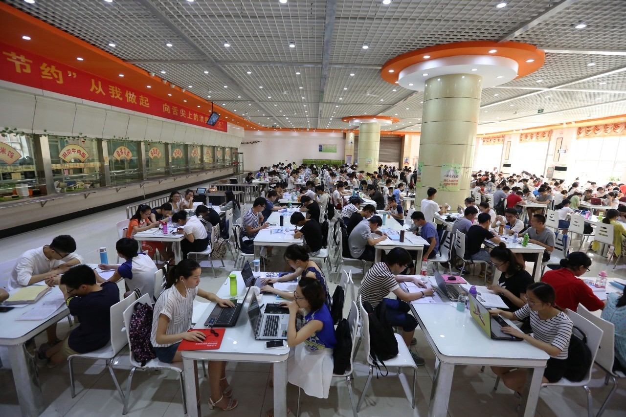 △近期,鄭州高溫來襲。6月21日,為方便學(xué)生的學(xué)習(xí)和備考,鄭州大學(xué)后勤集團(tuán)在各校區(qū)開放了部分學(xué)生餐廳,在餐廳開放空調(diào)并保證充足照明,使餐廳成為臨時(shí)自習(xí)室。