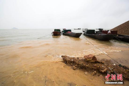 江西都昌磯山附近洪水涌上岸邊