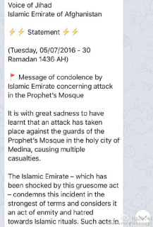截至目前為止,塔利班與敘利亞基地組織“勝利戰(zhàn)線”已宣布譴責(zé)麥地那恐襲。盡管有最大嫌疑,IS方面沒有任何動(dòng)向,既沒有宣布責(zé)任也沒有發(fā)表譴責(zé)。