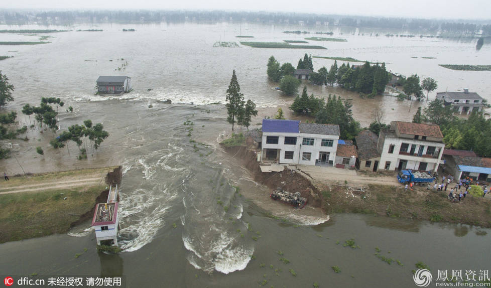 10日上午,湖南省華容縣新華垸的治河鎮(zhèn)南堤紅旗閘管身新老土結(jié)合部位發(fā)生滲漏,隨后險(xiǎn)情迅速惡化,最終在10時(shí)57分堤身下沉并潰口,滔滔洪水沖入新華垸。截至昨晚9時(shí),約2.36萬人已被轉(zhuǎn)移。在搶險(xiǎn)救援中,身系安全繩的搶險(xiǎn)人員駕駛著載滿麻石的卡車駛向潰口,在卡車墜入潰口前跳下卡車,用連車帶石的方式封堵潰口。預(yù)計(jì)潰口復(fù)堤在11日下午完成。