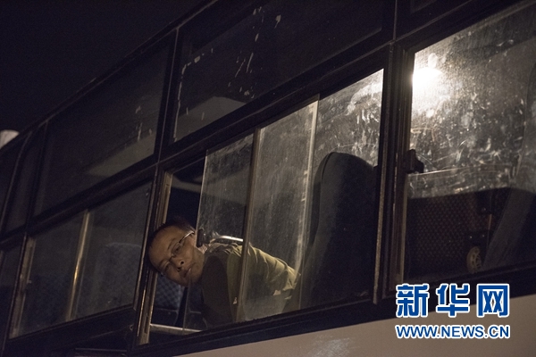 7月12日,在肯尼亞首都內(nèi)羅畢的喬莫·肯雅塔國際機場,一名從南蘇丹撤離的中資企業(yè)員工登上大巴后向車外張望。