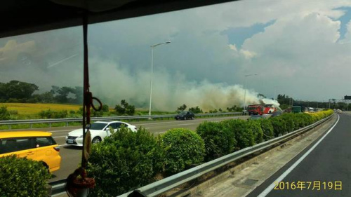 今天(7月19日)中午12時(shí)57分,臺(tái)灣桃園機(jī)場(chǎng)聯(lián)絡(luò)道發(fā)生自撞車禍,當(dāng)?shù)鼐藛T接獲通報(bào),一輛游覽車因不明原因撞上護(hù)欄,整輛車隨即起火燃燒,疑似車上有人員受困,桃園消防局正趕往現(xiàn)場(chǎng)搶救。