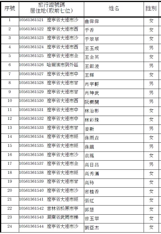 根據(jù)臺(tái)觀光局資料,車上24名大陸旅客名單為: