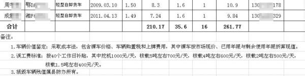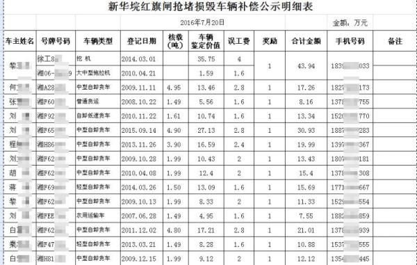新華垸紅旗閘搶堵車輛補償公示明細(xì)表