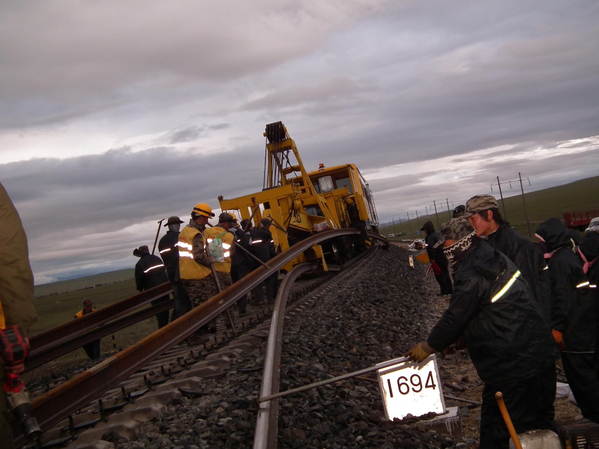 據(jù)了解,凍土地段的無(wú)縫線路換鋪改造是格拉線通車以來(lái)首次將原有普通線路更換為無(wú)縫線路。先用換軌車換鋪長(zhǎng)鋼軌,再運(yùn)用具有世界先進(jìn)水平的移動(dòng)式氣壓焊軌車將500米至1500米長(zhǎng)的長(zhǎng)軌條焊接成“長(zhǎng)龍”,在設(shè)計(jì)鎖定軌溫范圍內(nèi)進(jìn)行軌道應(yīng)力放散和鎖定,然后通過(guò)打磨、探傷等工藝,使焊接處平順,從而消除鋼軌接頭,最終形成無(wú)縫線路。