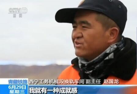 青藏鐵路公司西寧工務(wù)機(jī)械段換軌車間副主任趙國(guó)龍:現(xiàn)在換成無(wú)縫(鋼軌)了,沒(méi)有接頭了,不管是西藏人民到北京去,沈陽(yáng)北站,還是全國(guó)人民到西藏來(lái)旅游,坐到這個(gè)列車上,感覺(jué)特別舒服,我就有一種成就感。