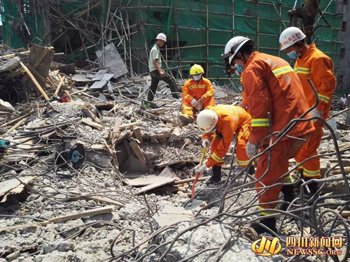 8月22日下午6點半左右,四川省南充閬中市七里新區(qū)一商住樓工程在澆筑混凝土?xí)r,發(fā)生支模架垮塌事故。當時,王友均和另外幾名工人正站在樓頂澆筑混凝土,但腳下的支模架毫無征兆坍塌了。截止目前,坍塌事故已造成6人死亡,4人受傷。目前所有傷亡人員家屬已經(jīng)全部核實通知到位,部分傷亡人員的家屬已趕到醫(yī)院,其余人員家屬正在趕來途中。圖為經(jīng)過現(xiàn)場挖掘,救援人員發(fā)現(xiàn)失蹤者尸體。
