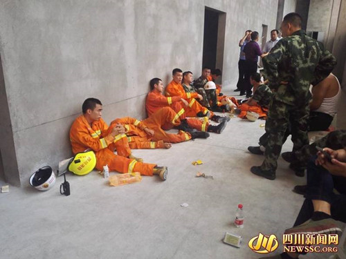 截止目前,官方確認此次事故造成6人死亡,4人受傷。圖為連夜持續(xù)搜救,不少救援人員疲憊不堪。