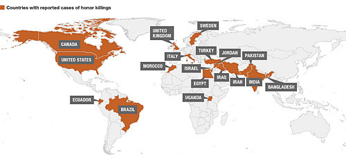 因為媒體報道的偏向性導(dǎo)致很多人認(rèn)為榮譽謀殺僅存在于信仰伊斯蘭教的地區(qū),但是其實這是一個誤解,也使得很多非伊斯蘭地區(qū)的榮譽謀殺行為難以獲得關(guān)注。比如在意大利,黑手黨家族就會對破壞家族榮譽的人進行榮譽謀殺。