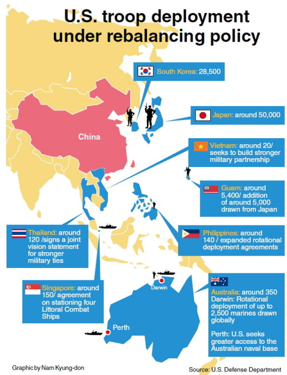 2013年時(shí)美國在“亞太再平衡”政策下的部署