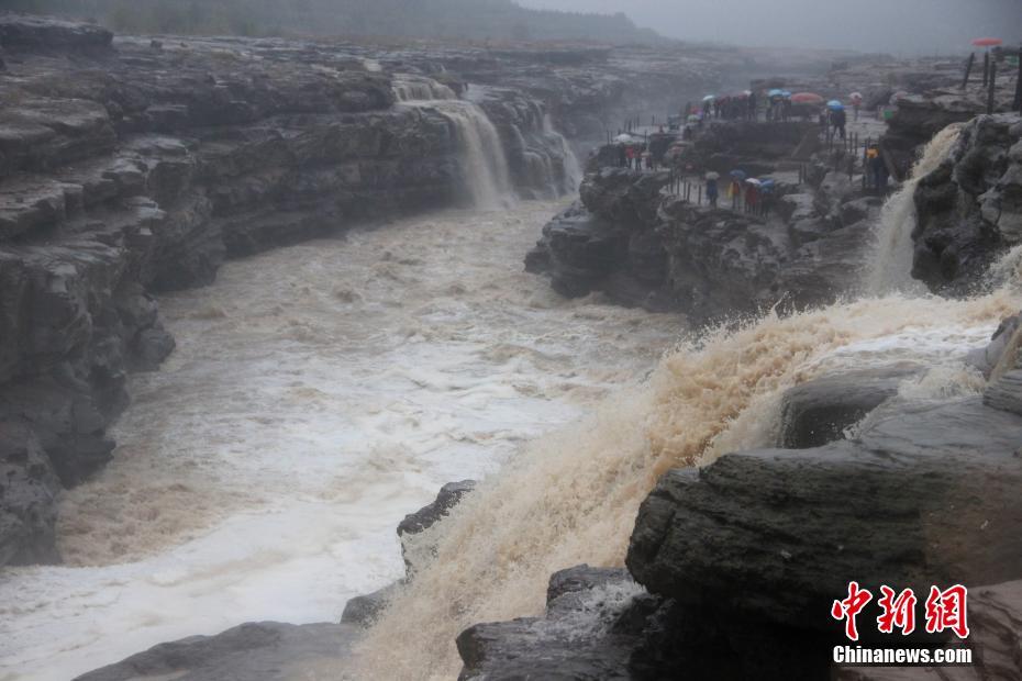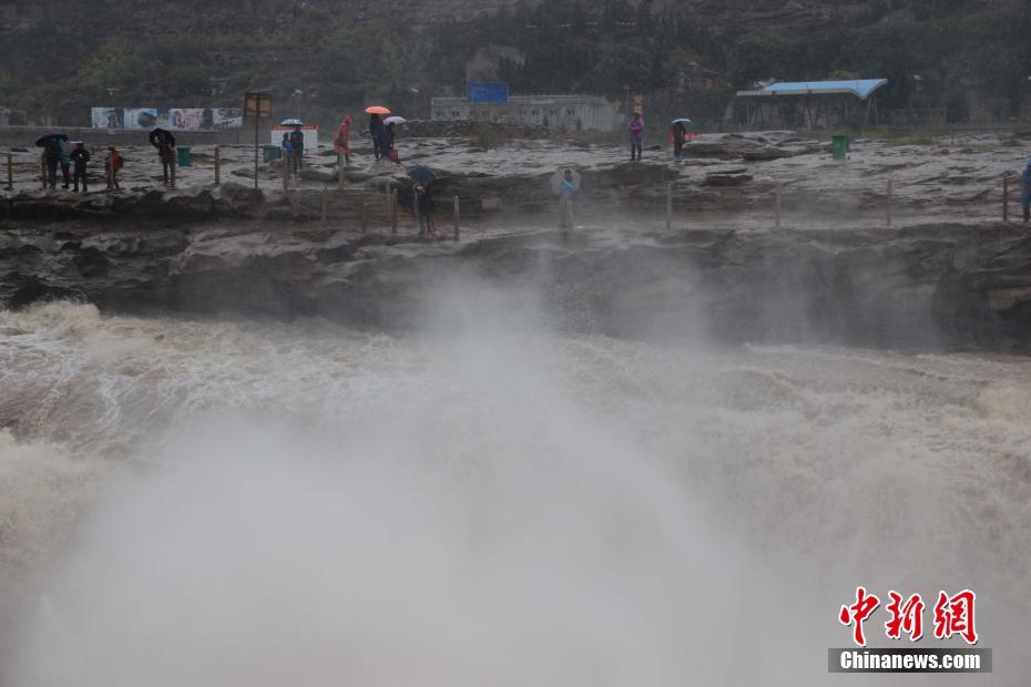 近日,陜西宜川縣迎來連陰雨天氣,位于該縣境內(nèi)的壺口瀑布景區(qū)也出現(xiàn)“水底升煙”的景觀。據(jù)了解,“水底升煙”主要因?yàn)辄S河水在壺口的落差較大而激起水霧騰空,好似水底升起的煙霧一般。張一辰 攝