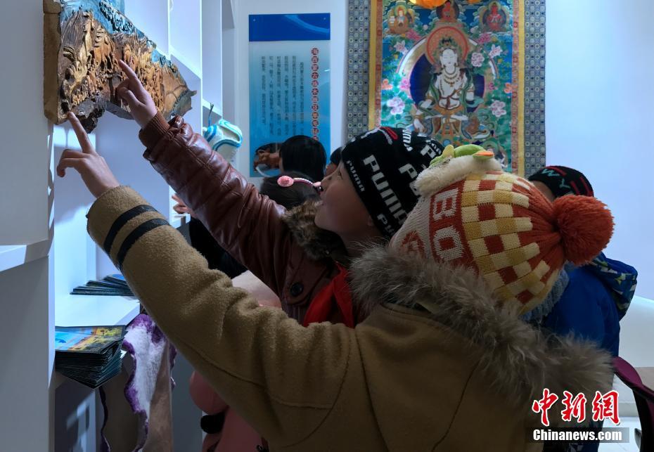 1月10日,在2017年寒假即將來臨,為幫助青海省互助縣西山鄉(xiāng)東山村的留守兒童“走出”大山,感受城市生活,共青團(tuán)青海省委駐東山村精準(zhǔn)扶貧工作隊(duì)以“情系留守愛暖童心”為主題,組織青年志愿者與東山村建良小學(xué)30名留守兒童結(jié)對(duì)開展留守兒童實(shí)踐活動(dòng)。圖為孩子們參觀青海省文化館內(nèi)的剪紙。 孫睿 攝