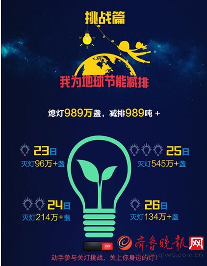 齊魯晚報(bào)03月28日訊:3月25日20:30,一年一度的地球一小時(shí)熄燈活動(dòng)再次啟動(dòng),作為一個(gè)全世界共同參與的活動(dòng),以“熄燈”為主要標(biāo)志性動(dòng)作的地球一小時(shí)活動(dòng)已經(jīng)持續(xù)超過(guò)10年,也是目前全球參與規(guī)模最大的開源性環(huán)?;顒?dòng)。