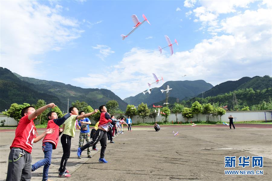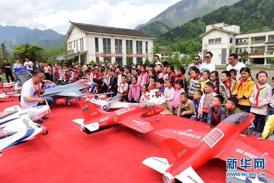 5月11日,在四川省綿竹市清平學(xué)校,學(xué)生們在了解航模相關(guān)知識。