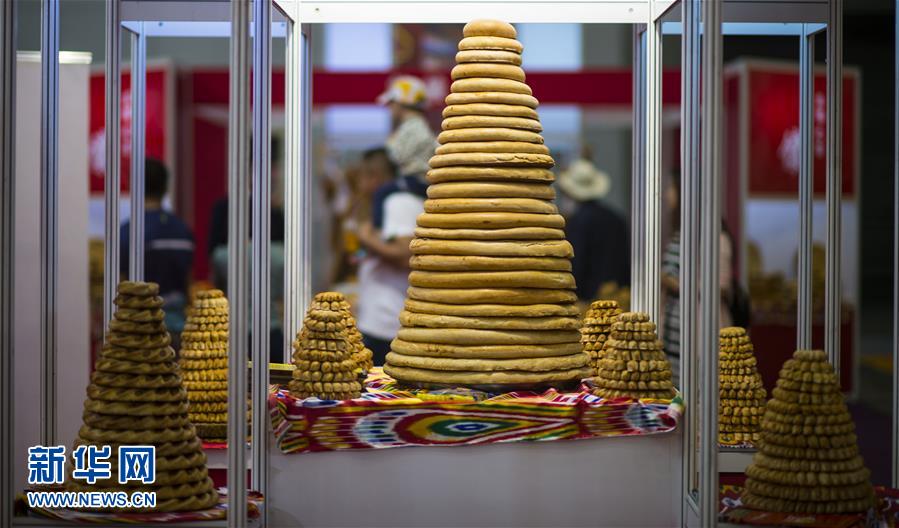 這是第七屆烏魯木齊國際食品餐飲博覽會上展示的各色烤馕(5月18日攝)。當(dāng)日,第七屆烏魯木齊國際食品餐飲博覽會開幕,本次博覽會突出“一帶一路”主題,吸引了40多個國家和地區(qū)的食品企業(yè)參展,展會將持續(xù)至5月22日。新華社記者江文耀攝