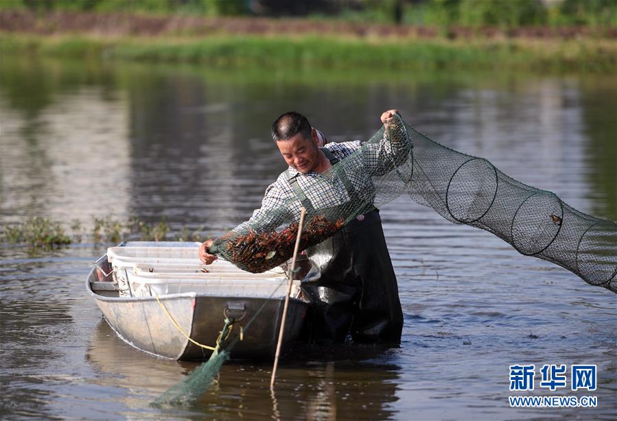 6月7日,兩位農(nóng)民在湖南南縣明康龍蝦養(yǎng)殖專業(yè)合作社的稻田邊將收上來的小龍蝦裝箱。十多天后這片稻田將開始種植水稻,而沒被收走的小龍蝦將游入稻田邊上的水溝里繼續(xù)繁殖,繁殖出的蝦苗第二年將回到水田生長。近日,位于洞庭湖區(qū)的湖南南縣的稻田里一片繁忙景象,當(dāng)?shù)剞r(nóng)民正趕在種植水稻前搶收稻田里的小龍蝦。近年來,南縣大力發(fā)展稻蝦共生立體生態(tài)循環(huán)種養(yǎng),在稻田里實(shí)現(xiàn)養(yǎng)蝦和一季稻輪作。據(jù)介紹,稻田養(yǎng)蝦不但提高了農(nóng)田的單位產(chǎn)出,而且可起到除草、節(jié)肥、疏松土壤等作用,讓水稻種植更加綠色環(huán)保。在南縣,“稻蝦共生”已形成了一條產(chǎn)業(yè)鏈,當(dāng)?shù)仄髽I(yè)加工的速凍蝦、蝦仁等產(chǎn)品銷往全國各地,生態(tài)種植后加工而成的“稻蝦米”,價(jià)格也大大高出普通稻米。目前南縣全縣實(shí)施“稻蝦共養(yǎng)”的水田總面積達(dá)到25萬畝,畝均利潤達(dá)到3500元,帶動(dòng)了近4萬相關(guān)人員就業(yè)。新華社記者 李尕 攝