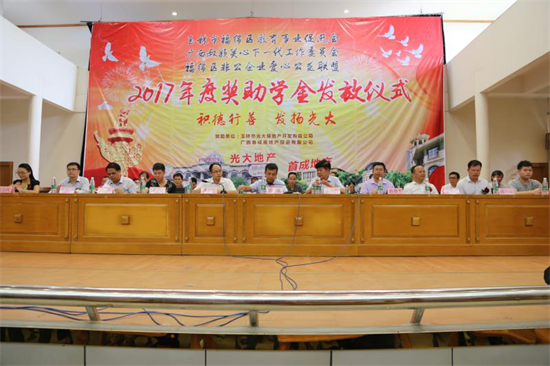 2017年8月賴孝烈捐贈100多萬元用于發(fā)放獎助學(xué)金,獲得獎助學(xué)金人數(shù)360人。包括被一本大學(xué)錄取的福綿籍學(xué)子以及玉州區(qū)、南寧市、梧州市、欽州市、貴港市、賀州市等賴氏學(xué)子,以及考上玉林高中的福綿籍應(yīng)屆初中畢業(yè)生。據(jù)了解,賴孝烈與兒子賴恭寧、賴昭、賴良一家人在玉林獎學(xué)助學(xué)已有8年,投入資金上千萬。這種大愛,閃耀著人性的光輝,我們?yōu)橛羞@樣的長者點贊。