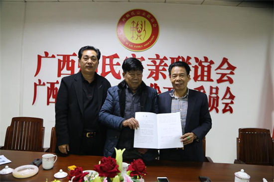 (世界賴氏總會常務(wù)副會長賴松谷、執(zhí)行會長賴衛(wèi)東到廣西宗親會考察工作)