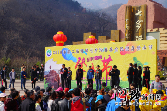 ?春風(fēng)送爽,暖陽(yáng)高照。今天上午,七步溝景區(qū)彩旗招展,鑼鼓喧天,2018第二屆邯鄲七步溝春季全民健身登山節(jié)開(kāi)幕儀式在這里舉行。來(lái)自全國(guó)各地近萬(wàn)人登山愛(ài)好者參加活動(dòng)。