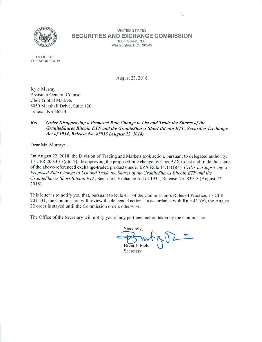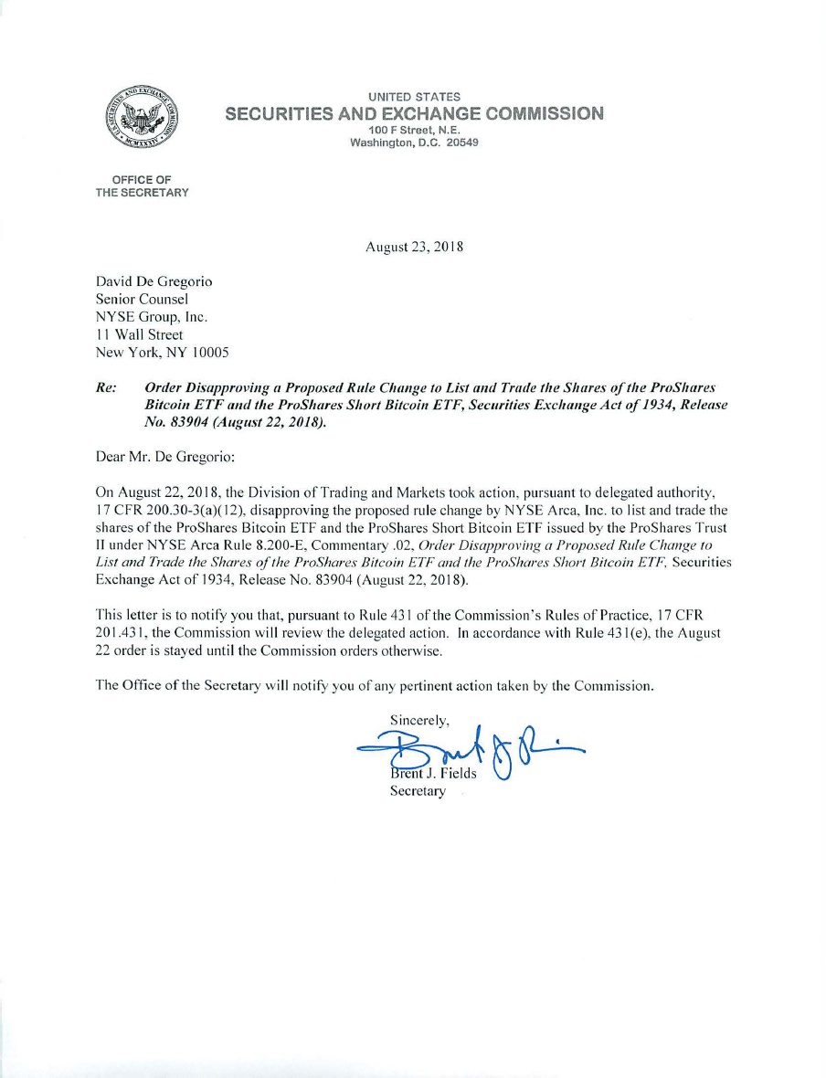 SEC工作人員在昨天晚些時候公布的結(jié)果中,拒絕了Proshares, GraniteShares以及Direxion這三家公司的比特幣ETF申請。然而,根據(jù)最新的信件,SEC高級官員將審查這些命令,目前尚不清楚審查將在何時完成。
