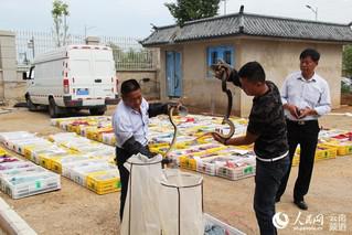 為了清查這批活體蛇類的數(shù)量,25日上午,保山市森林公安局專門請來了隆陽區(qū)野保辦工作人員和有飼養(yǎng)資質(zhì)的養(yǎng)蛇工人前來清點,共花費了10個小時才清點完畢。經(jīng)過清點,陳某涉嫌非法運輸?shù)?58件活體蛇類,共計有活體蛇3940條,總重2823公斤。其中有瀕危野生動植物國際貿(mào)易公約(CITES)附錄Ⅱ物種眼鏡蛇2230條,總重1433公斤;滑鼠蛇1247條,總重999公斤;蝰蛇463條,總重391公斤,案值總計40余萬元。