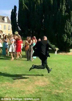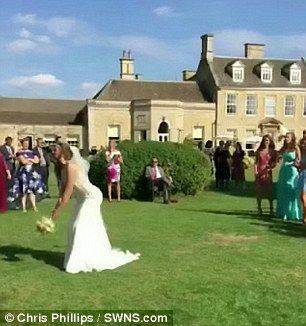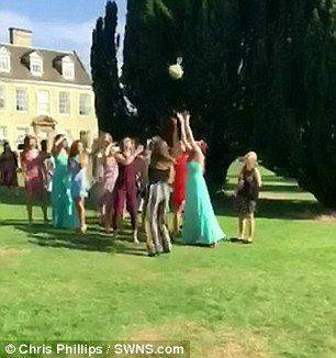 一位名叫瑞秋·貝斯利的女士,幸運(yùn)的搶到了捧花。而正在此刻,意想不到的事情發(fā)生了?;槎Y攝像正好記錄下這個(gè)滑稽的一幕。