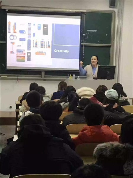 講座現(xiàn)場,王超藝通過ppt,無私分享了她在美國的學習工作經(jīng)歷。她站在國際高度,和大學生談了未來的職業(yè)規(guī)劃,國內(nèi)外市場對設計系學生的市場需求情況,以及中國大學生為什么要做到兼容并蓄,吸收中西方不同文化、產(chǎn)生思想觀念交流碰撞的重要性,為大學生們?nèi)娲蜷_國際視野。