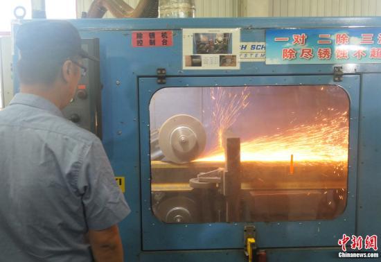 工人在進(jìn)行除銹作業(yè)。張旭 攝