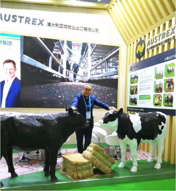 在食品及農(nóng)產(chǎn)品展區(qū),文海煒現(xiàn)場(chǎng)聯(lián)系民革黨員張力就納雍托牛所與澳大利亞養(yǎng)牛產(chǎn)業(yè)對(duì)接,助力納雍脫貧攻堅(jiān)