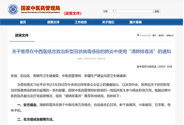 疫情動態(tài)| 重磅!中西醫(yī)結(jié)合救治新冠肺炎推薦使用“清肺排毒湯”