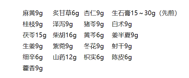 一、處方組合。清肺排毒湯來源于中醫(yī)經(jīng)典方劑組合,包括麻杏石甘湯、射干麻黃湯、小柴胡湯、五苓散,性味平和。