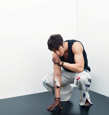 擁有絕佳好身材的蔣勁夫是個(gè)不折不扣的運(yùn)動(dòng)大男孩,但這次卻刻意壓制了他那飛揚(yáng)的青春荷爾蒙,用視覺的方式表現(xiàn)了“回到未來”的概念。