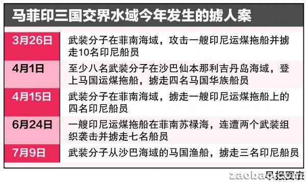 菲南武裝分子今年已在這個海域,干下至少五起擄人案。綁匪共擄走24名印尼船員及四名馬國船員,他們過后釋放其中14名印尼船員及四名馬國成員,目前仍有10名印尼船員在他們手中。