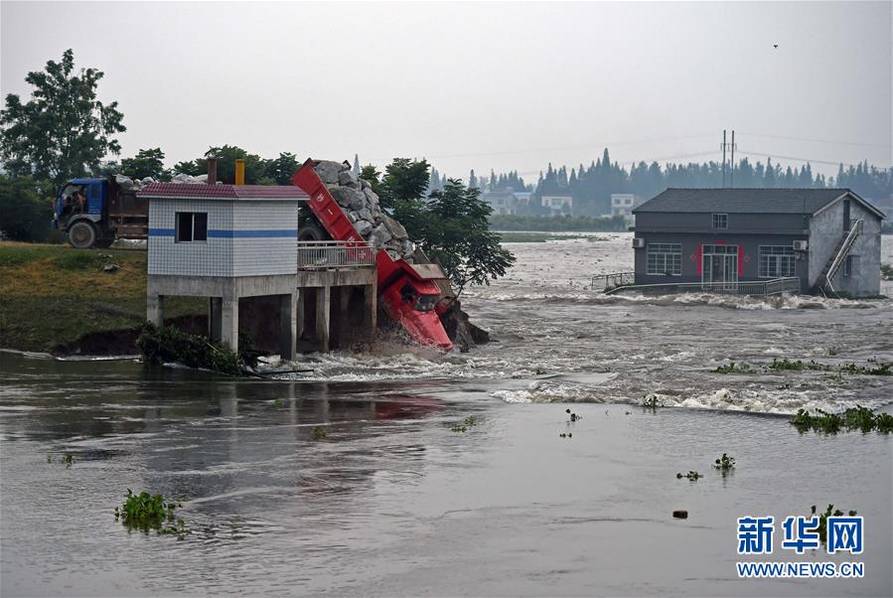 7月10日上午,湖南省華容縣新華垸發(fā)生重大管涌險情,紅旗閘附近出現(xiàn)潰口。危難之際,十幾輛滿載麻石的卡車在大堤兩邊一字排開,以連車帶石的方式駛入潰口堵住滾滾洪流。這群駕駛員被人們稱為“卡車敢死隊”。