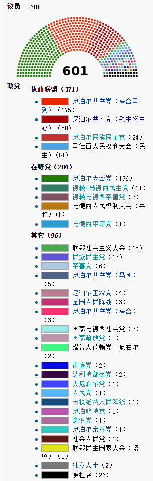 請看尼泊爾議會的黨派分布:
