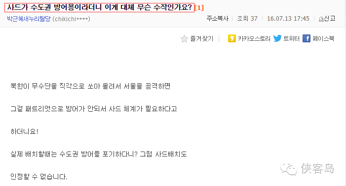 首爾居然沒(méi)在薩德防御圈?韓網(wǎng)友炸鍋