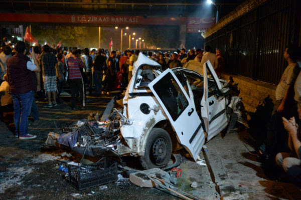 7月16日,在土耳其安卡拉,車輛在軍事政變導(dǎo)致的沖突中受損