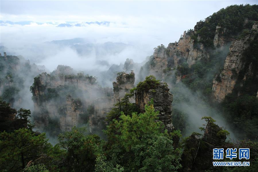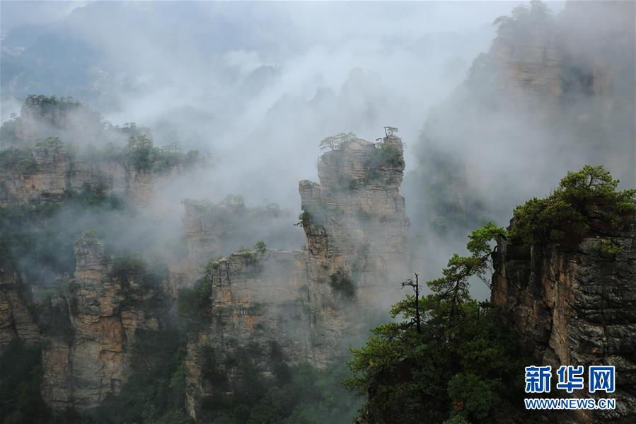 10月22日,位于湖南張家界風(fēng)景區(qū)的楊家界峰墻被云霧包圍。當(dāng)日,張家界風(fēng)景區(qū)云霧繚繞,被譽(yù)為“自然長(zhǎng)城”的楊家界峰墻在飄渺的云霧中時(shí)隱時(shí)現(xiàn)。 新華社發(fā)(吳勇兵 攝)